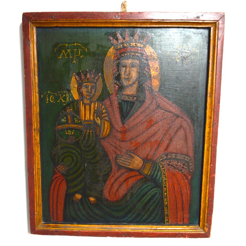 "Maica Domnului cu pruncul" icoana pe lemn Moldova secolul XIX.