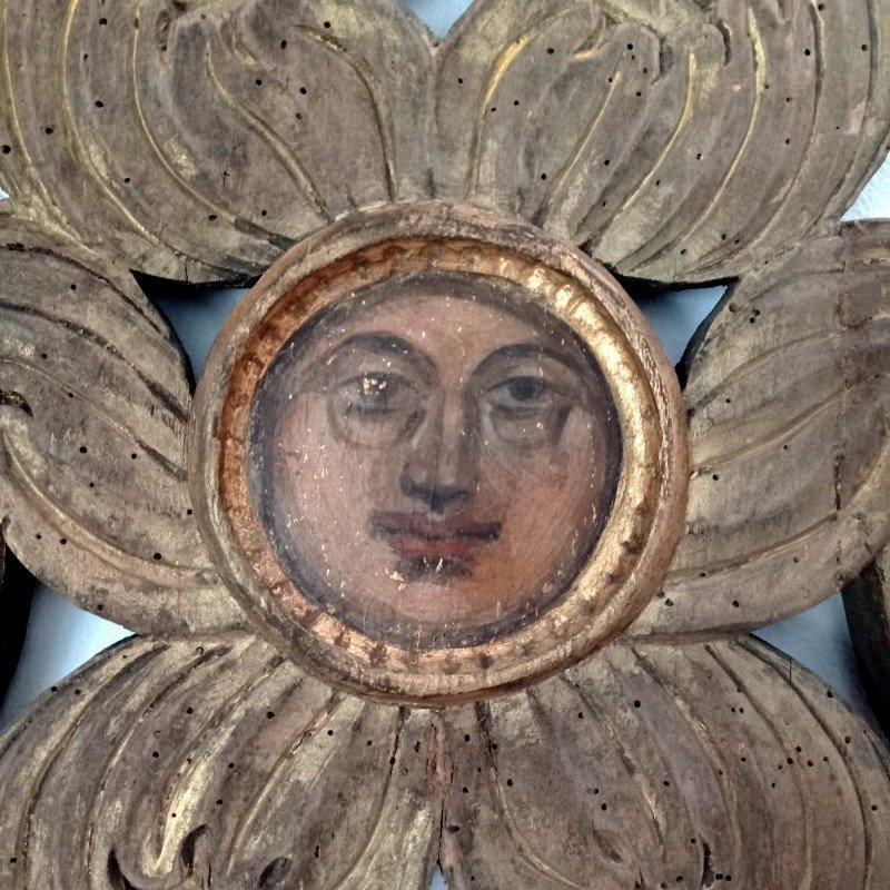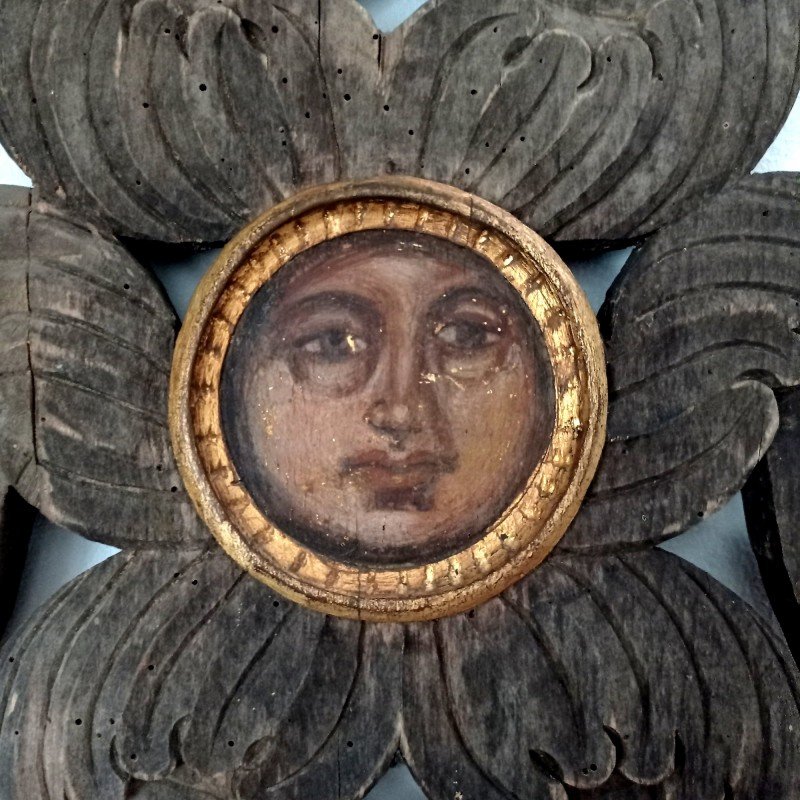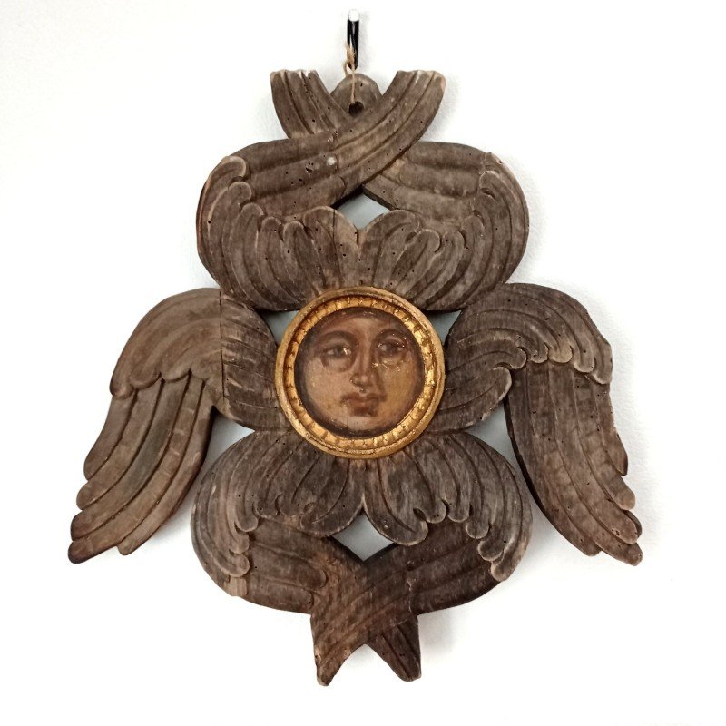 Heruvim secol 19 partial aurit, elaborat, cu medalioane pe ambele parti.