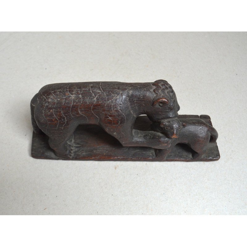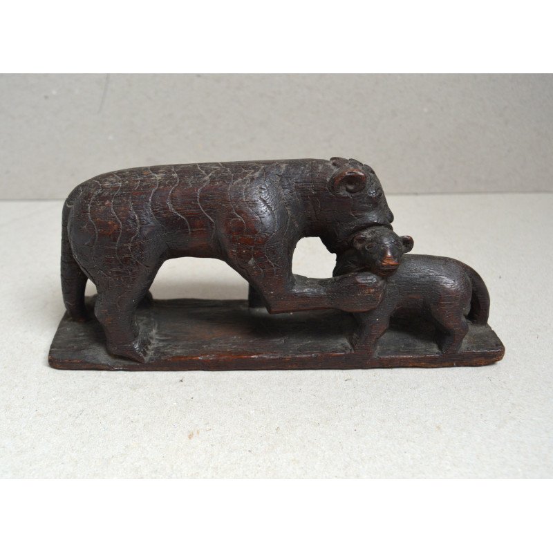 "Tigresa cu pui" statueta de lemn India sec 19.