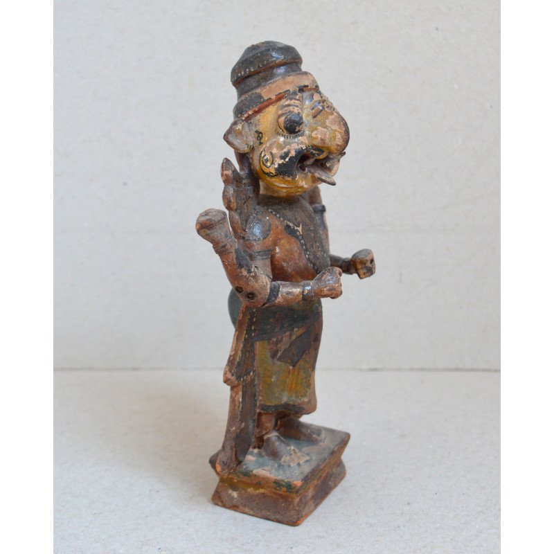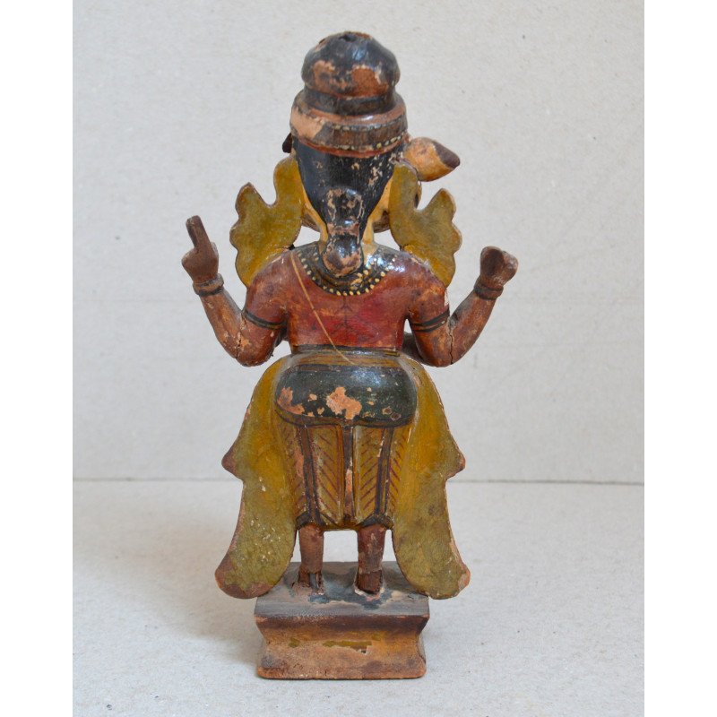 Această piesă e un bun exemplu de artă religioasă sud-asiatică sau sud-est asiatică, cel mai probabil din Indonezia (Java, Bali), unde cultul hindus-budist a fost foarte prezent și unde sunt frecvente reprezentările din lemn pictat ale zeilor.