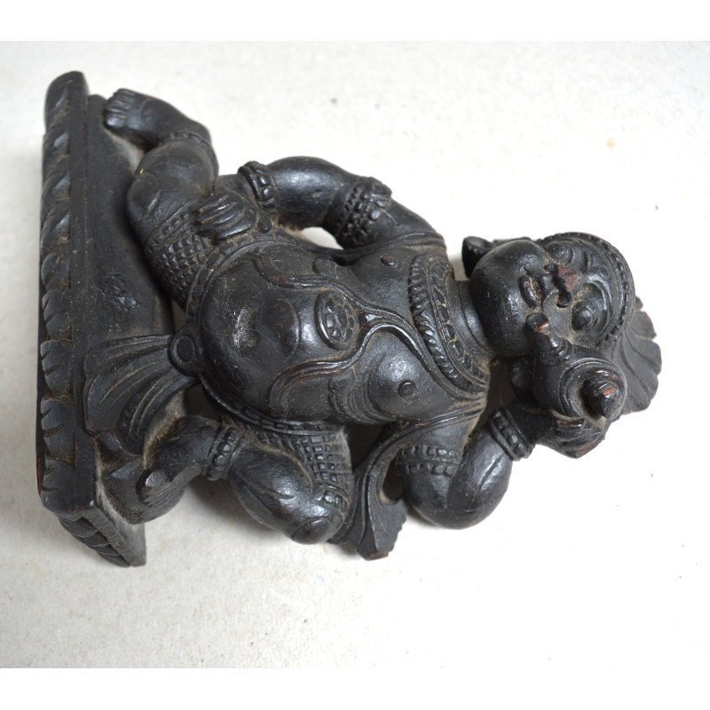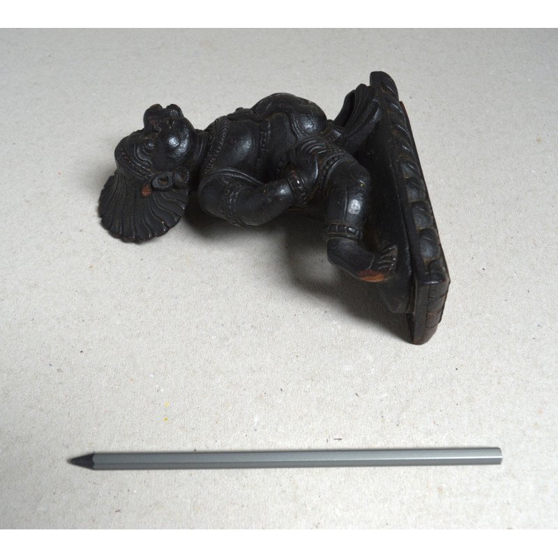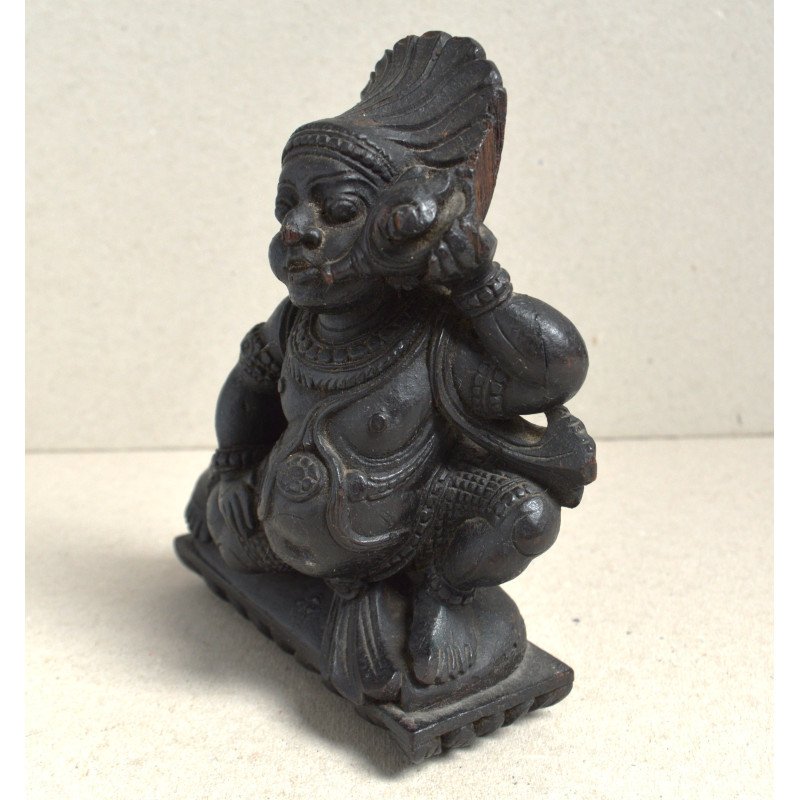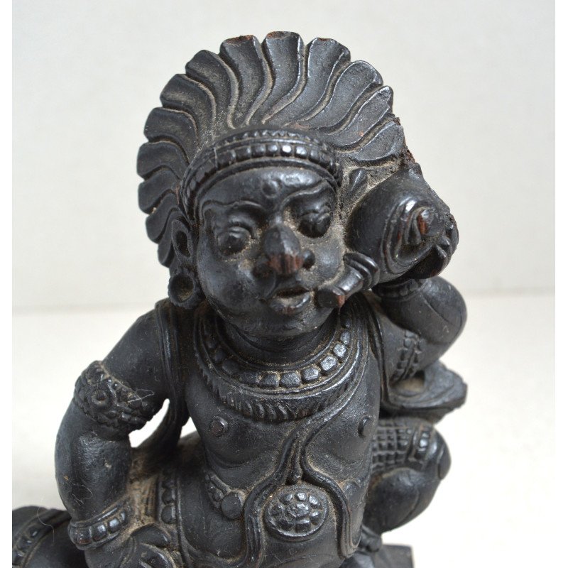 Obiect de artizanat religios sau decorativ, asociabil cu producția vernaculară sud-indiană. Posibilă reprezentare a unei divinități minore, a unui personaj mitologic (ex. Hanuman copil sau o figură de tip Bhuta ori gandharva). Stilul iconografic este caracteristic regiunilor Tamil Nadu și Karnataka, fiind întâlnit în teatrul ritual (ex. yakshagana) și în altarul domestic rural.