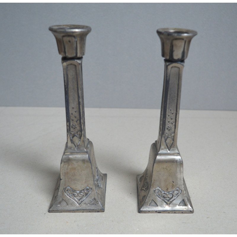 Pereche de sfesnice din antimoniu Art Nouveau cca 1900 .
