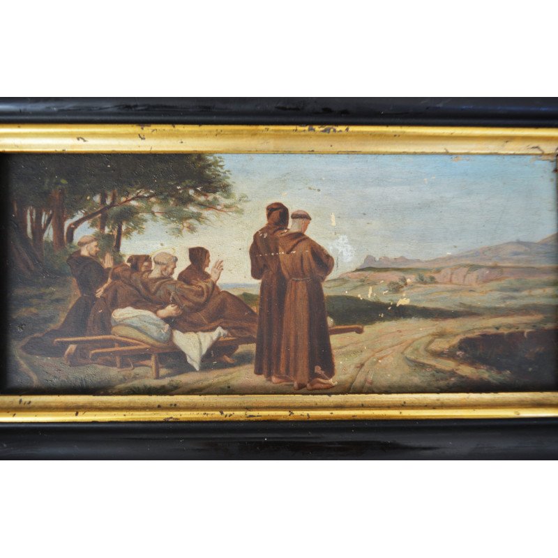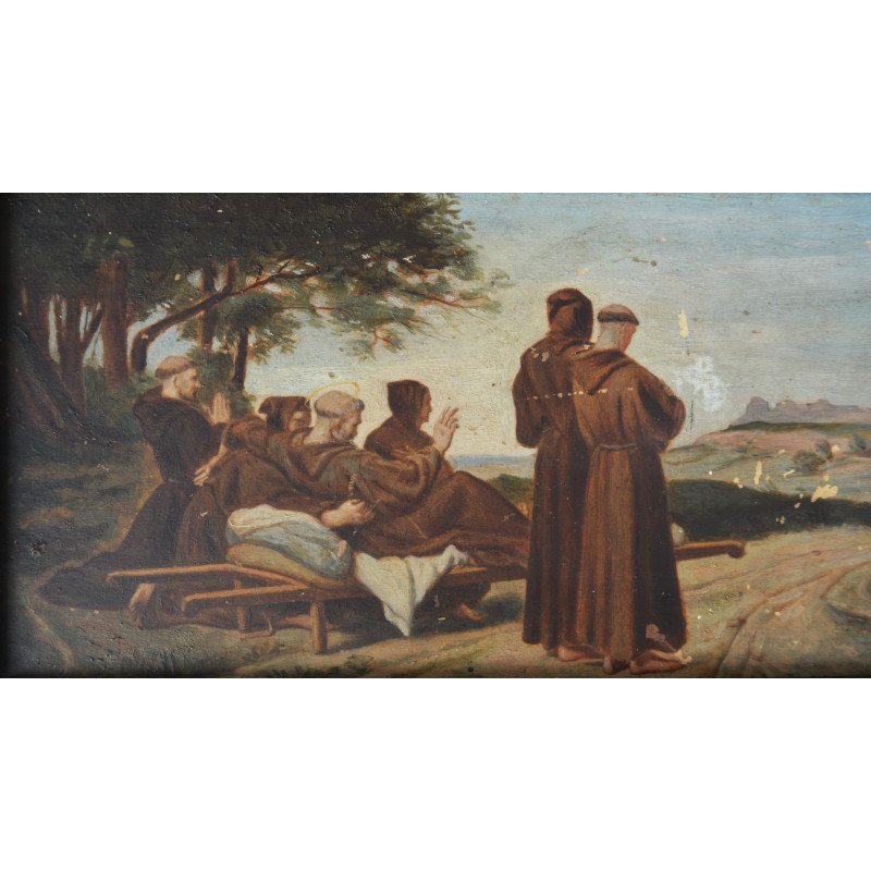 Francois Leon Benouville "Sfantul Francis de Assisi" pictura copie veche ulei pe lemn.