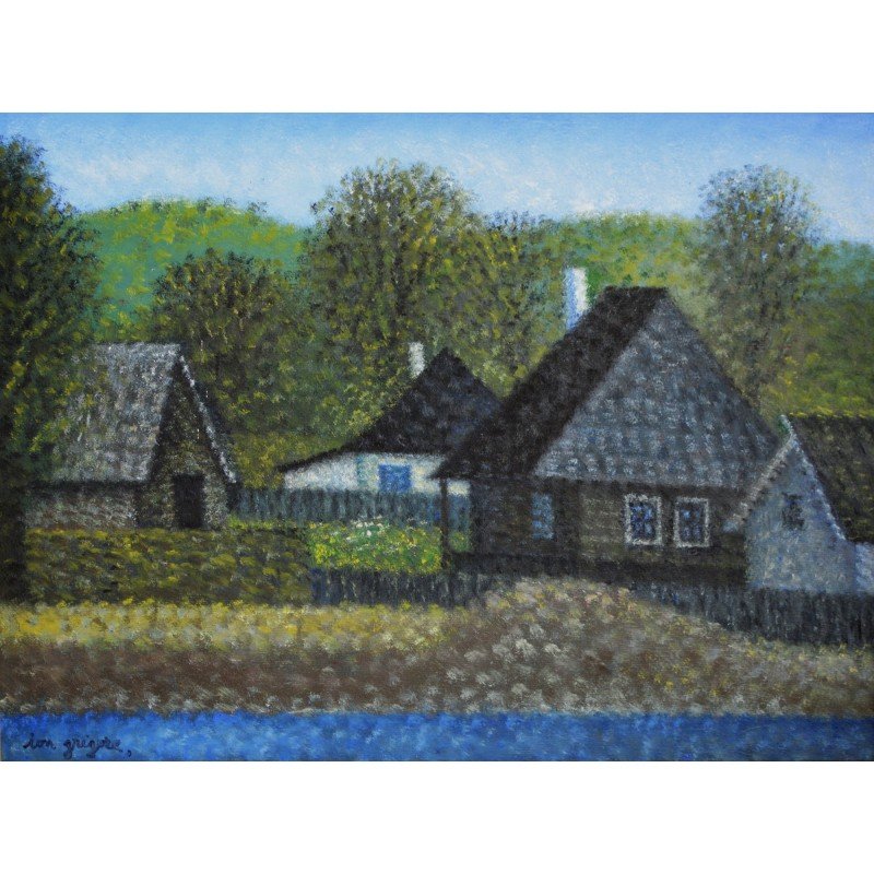 Tablou ulei pe panza Ion Grigore (1940-2016)- "Case la Manastirea Humorului", semnat si datat 2011