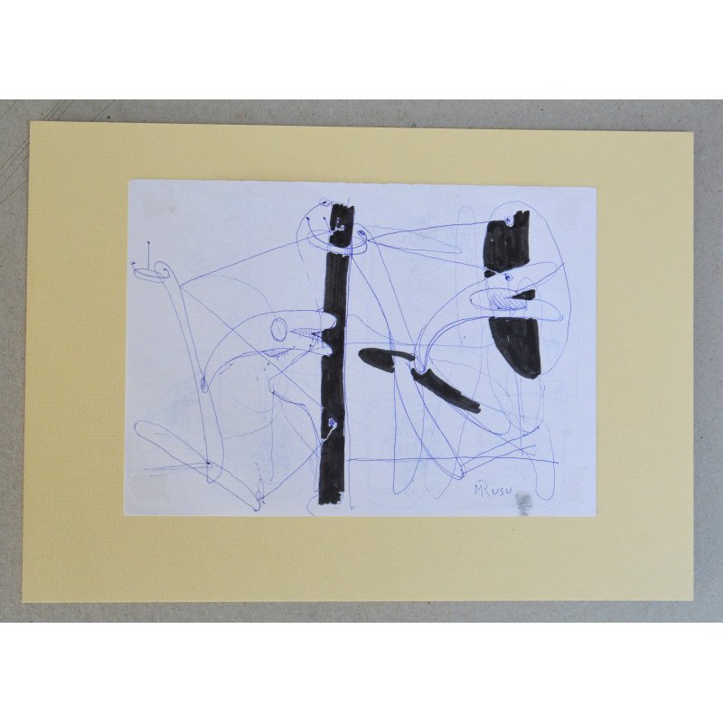 Mihai Rusu "Delfini" tehnica mixta pe hartie fixata pe un suport de carton.
