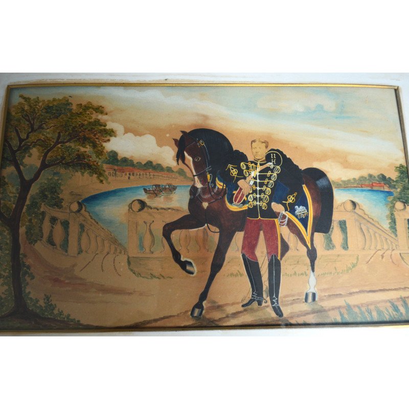 "Husar" tehnica mixta (tempera+colaj fotografie) sec 19.