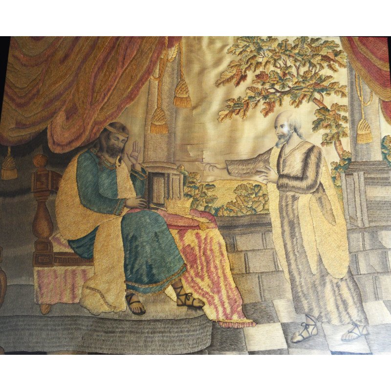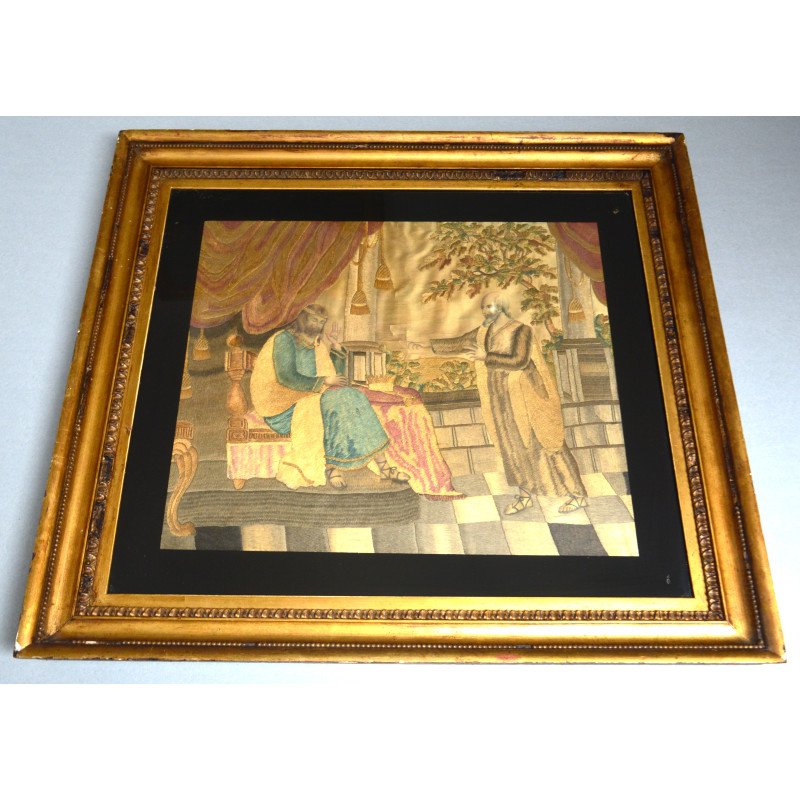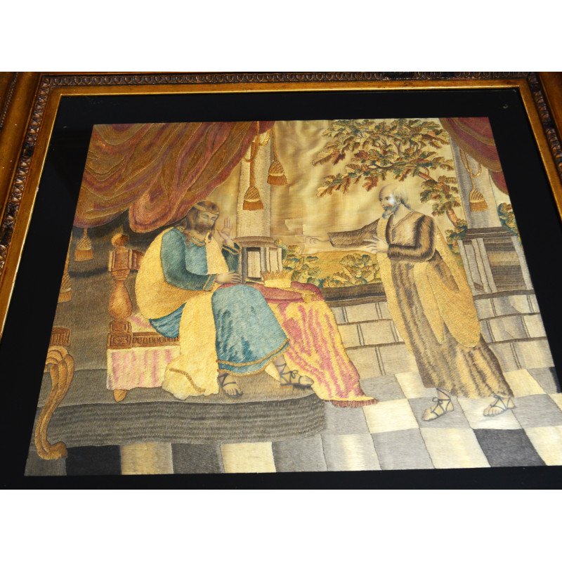 "Dumnezeu mustră pe David prin Natan" broderie cu fir de matase cca 1800.