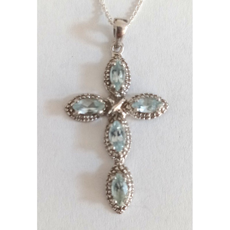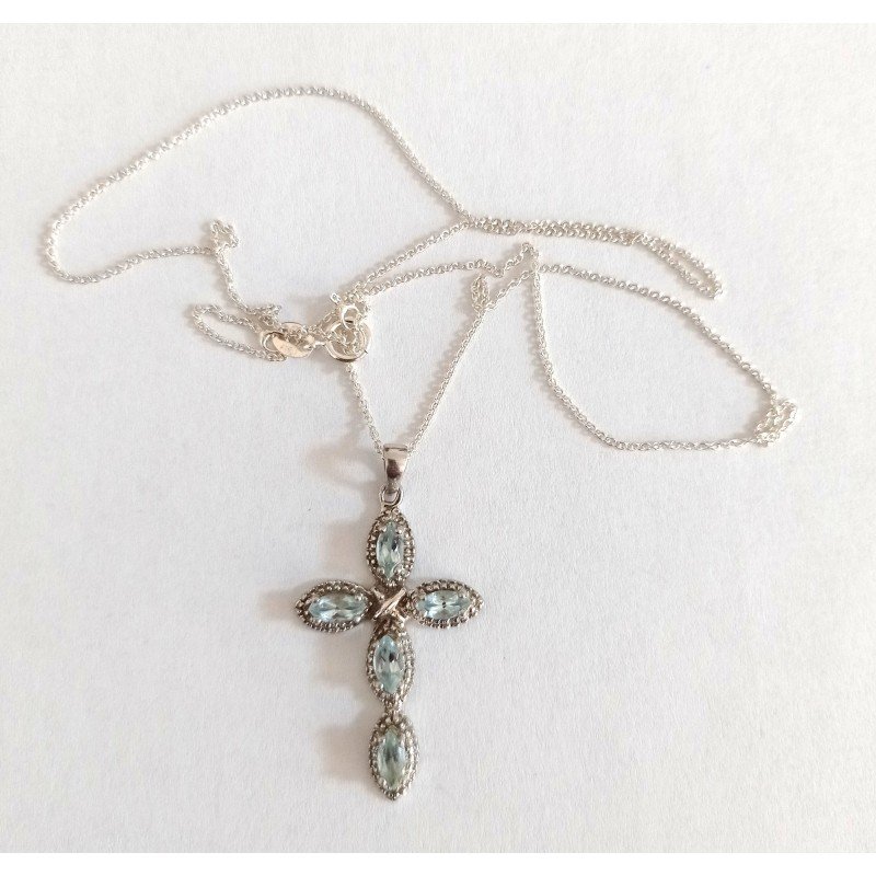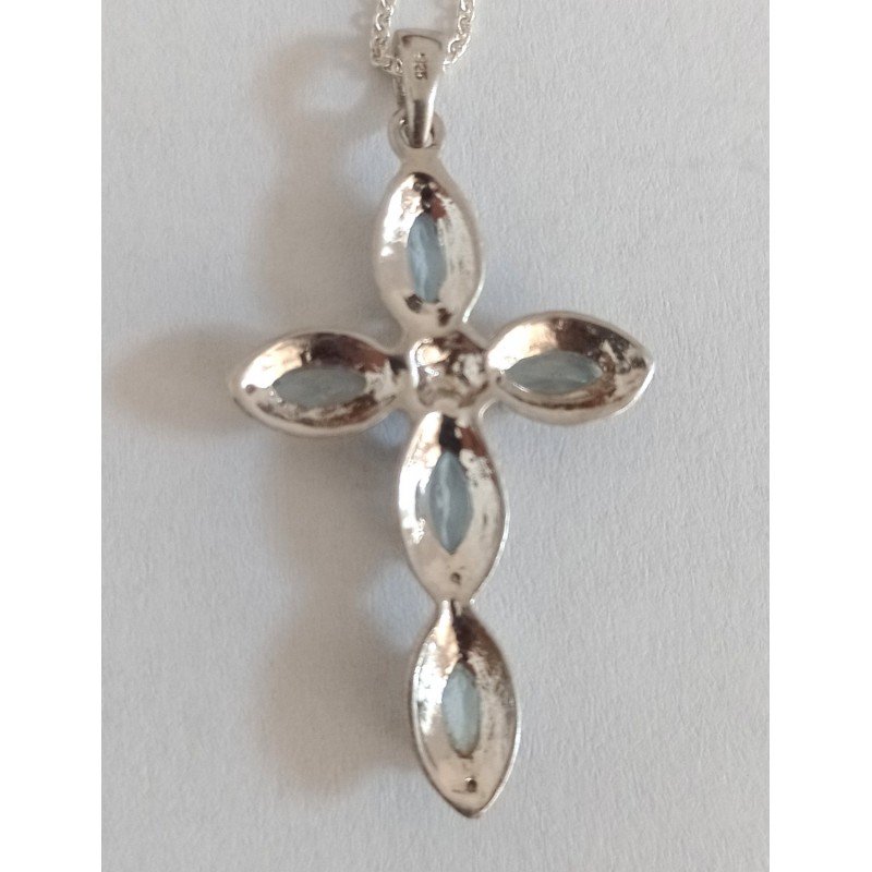 Cruce argint cu pietre topaz, marcaj 925. Crucea este insotita de lant de argint marcat 925.